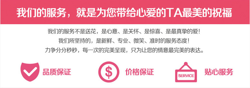 :收花人的姓名、电话、地址,送到日期和大致时间,卡片留言(卡片是免费的),订花人的姓名、订花人联系电话,以及商品编号、数量等资料列出来,然后发到我们的客服QQ,或者微信上,我们的工作人员将会按照您的要求为您送花。